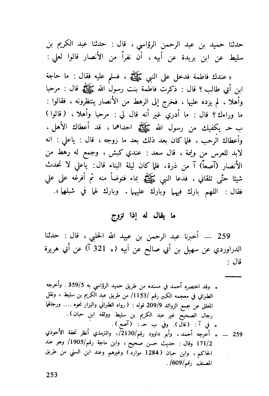 259 - أخبرنَا عبد الرَّحْمَن بن عيبد الله الْحلَبِي قَالَ حَدثنَا الدَّرَاورْدِي عَن سُهَيْل بن أبي صَالح عَن أَبِيه (321 آ) عَن أبي هُرَيْرَة قَالَ