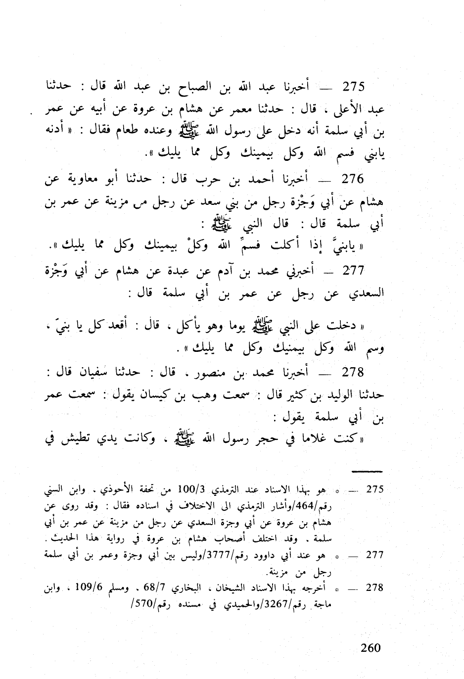 278 - أخبرنَا مُحَمَّد بن مَنْصُور قَالَ حَدثنَا سُفْيَان قَالَ حَدثنَا الْوَلِيد بن كثير قَالَ سَمِعت وهب بن كيسَان يَقُول سَمِعت عمر بن أبي سَلمَة يَقُول