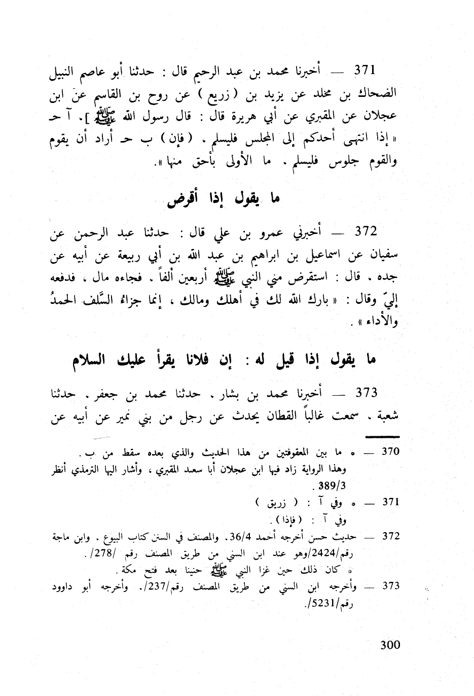 371 - أخبرنَا مُحَمَّد بن عبد الرَّحِيم قَالَ حَدثنَا أَبُو عَاصِم النَّبِيل الضَّحَّاك بن مخلد عَن يزِيد بن (زُرَيْع) عَن روح بن الْقَاسِم عَن ابْن عجلَان عَن المَقْبُري عَن ابي هُرَيْرَة قَالَ قَالَ رَسُول الله صلى الله عَلَيْهِ وَسلم] آح
