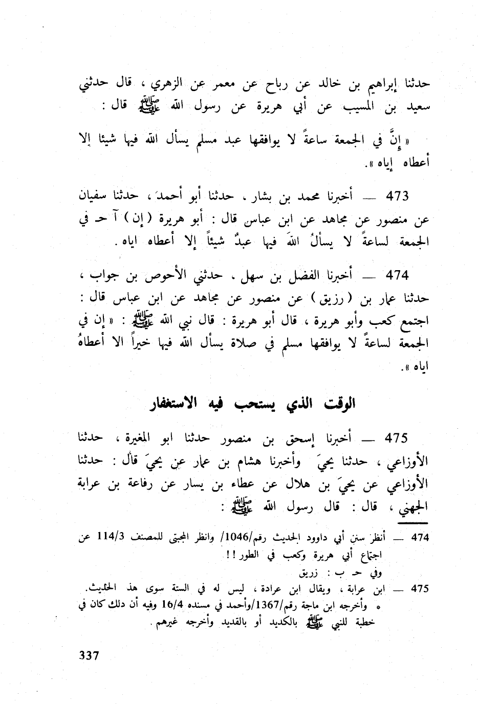 473 - أخبرنَا مُحَمَّد بن بشار حَدثنَا أَبُو أَحْمد حَدثنَا سُفْيَان عَن مَنْصُور عَن مُجَاهِد عَن ابْن عَبَّاس قَالَ أَبُو هُرَيْرَة (إِن) آح فِي الْجُمُعَة لساعة لَا يسْأَل الله فِيهَا عبد شَيْئا إِلَّا أعطَاهُ إِيَّاه