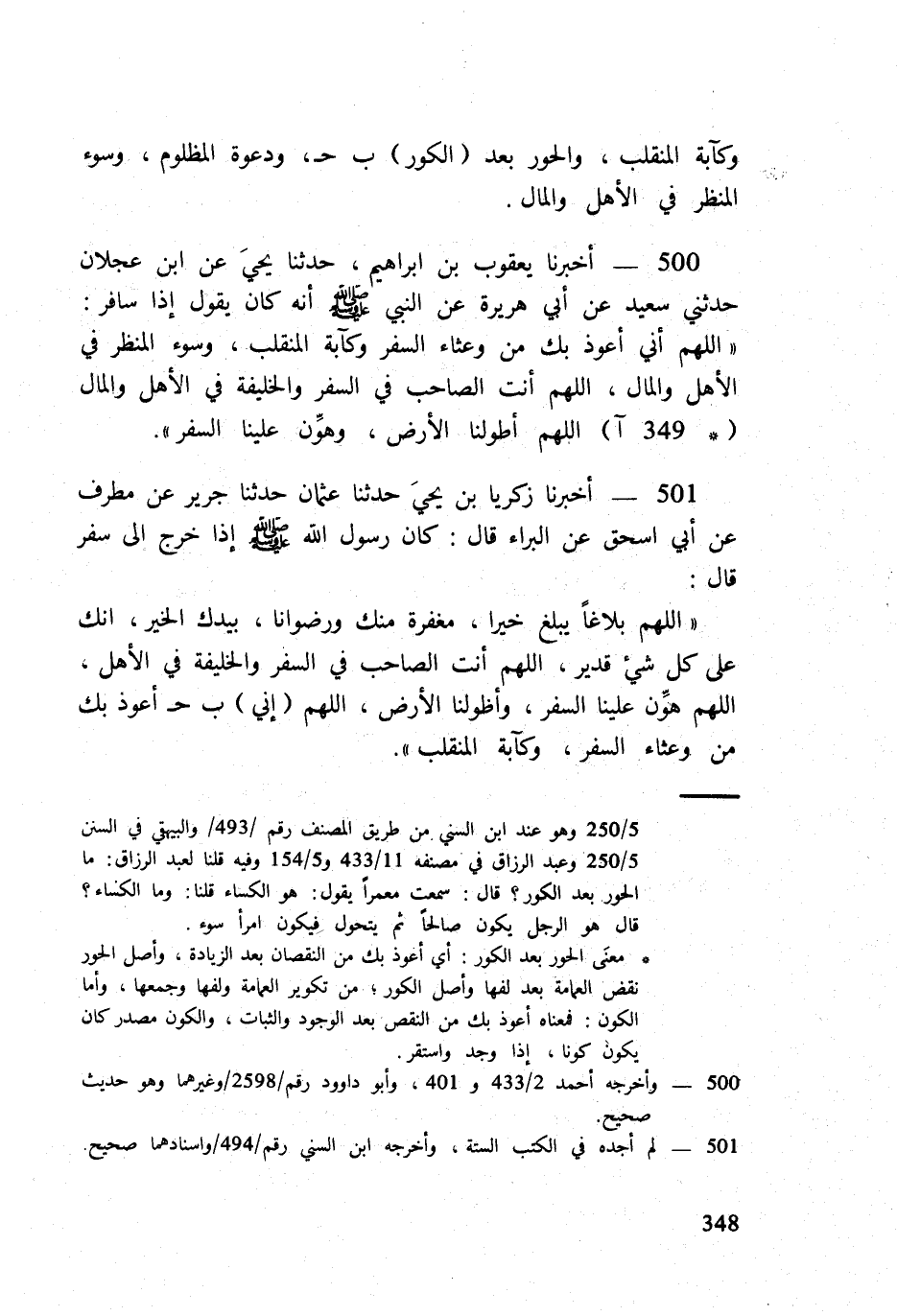 501 - أخبرنَا زَكَرِيَّا بن يحي حَدثنَا عُثْمَان حَدثنَا جرير عَن مطرف عَن أبي اسحق عَن الْبَراء قَالَ كَانَ رَسُول الله صلى الله عَلَيْهِ وَسلم إِذا خرج إِلَى سفر قَالَ