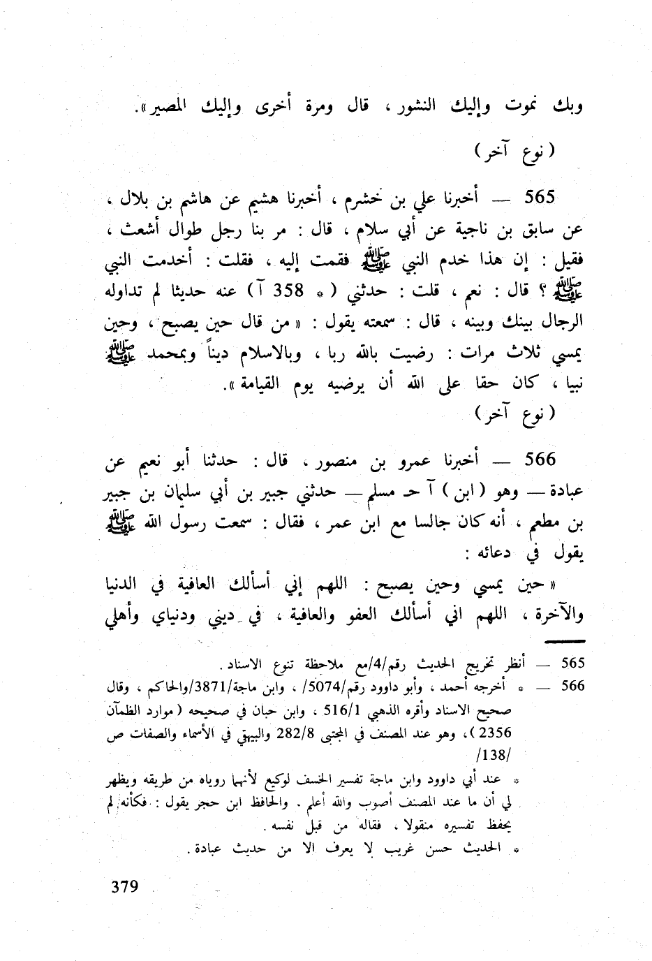 566 - أخبرنَا عَمْرو بن مَنْصُور قَالَ حَدثنَا أَبُو نعيم عَن عبَادَة وَهُوَ (ابْن) آح مُسلم حَدثنِي جُبَير بن أبي سُلَيْمَان بن جُبَير بن مطعم أَنه كَانَ جَالِسا مَعَ ابْن عمر فَقَالَ سَمِعت رَسُول الله صلى الله عَلَيْهِ وَسلم يَقُول فِي دُعَائِهِ