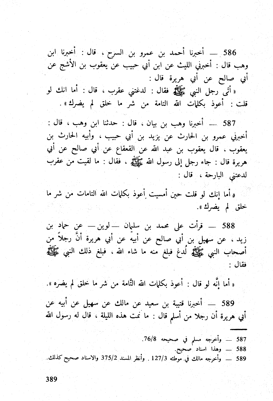588 - قَرَأت على مُحَمَّد بن سُلَيْمَان لوين عَن حَمَّاد بن زيد عَن سُهَيْل بن أبي صَالح عَن أَبِيه عَن أبي هُرَيْرَة أَن رجلا من أَصْحَاب النَّبِي صلى الله عَلَيْهِ وَسلم لدغ فَبلغ مِنْهُ مَا شَاءَ الله فَبلغ ذَلِك النَّبِي صلى الله عَلَيْهِ وَسلم فَقَالَ