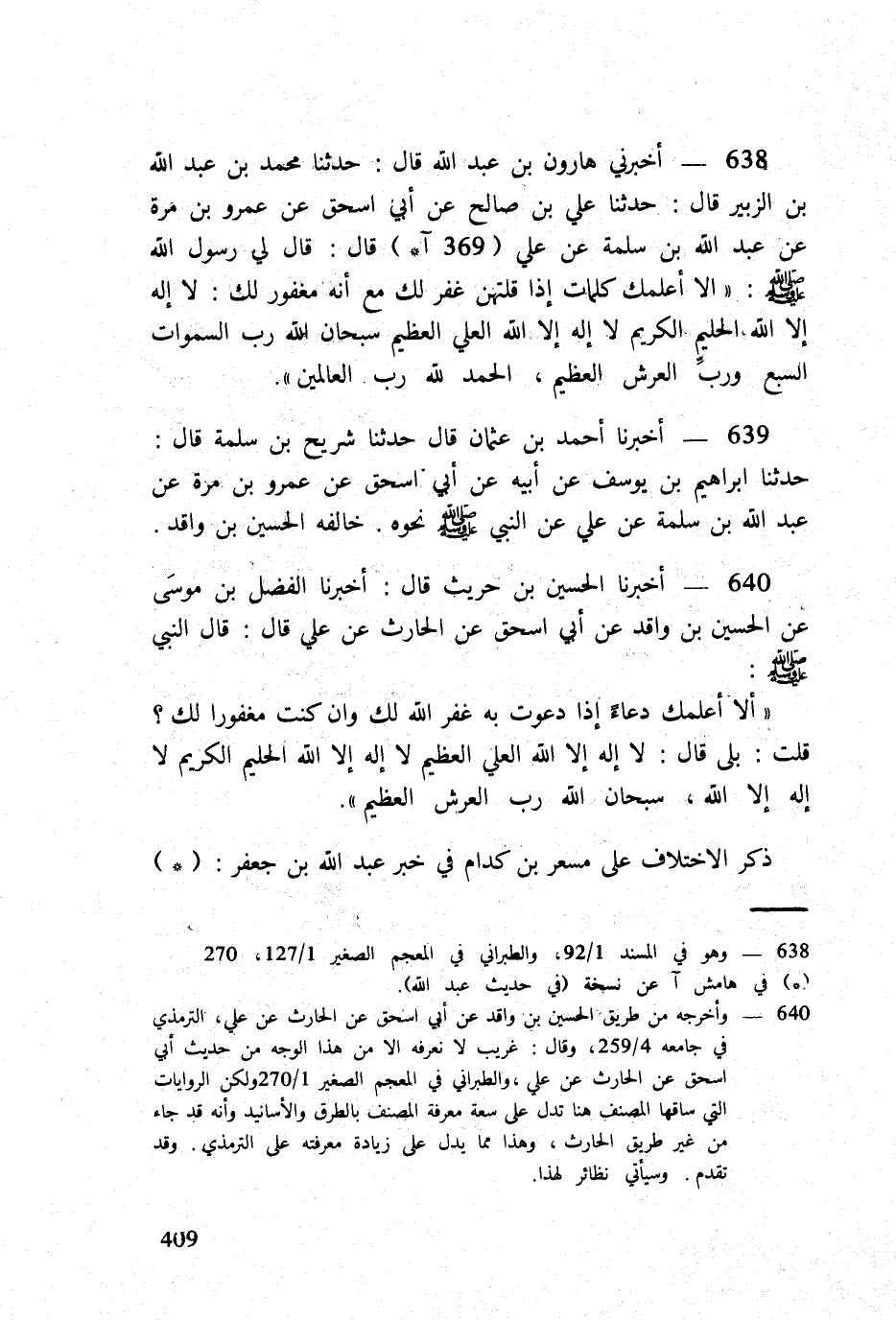 640 - أخبرنَا الْحُسَيْن بن حُرَيْث قَالَ أخبرنَا الْفضل بن مُوسَى عَن الْحُسَيْن بن وَاقد عَن أبي اسحق عَن الْحَارِث عَن عَليّ قَالَ قَالَ النَّبِي صلى الله عَلَيْهِ وَسلم