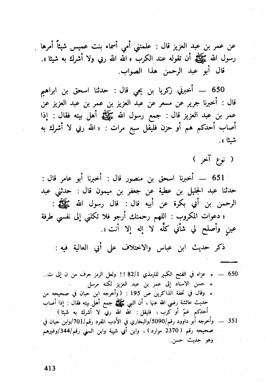 650 - أَخْبرنِي زَكَرِيَّا بن يحيى قَالَ حَدثنَا اسحق بن إِبْرَاهِيم قَالَ أخبرنَا جرير عَن مسعر عَن عبد الْعَزِيز بن عمر بن عبد الْعَزِيز عَن عمر بن عبد الْعَزِيز قَالَ جمع رَسُول الله صلى الله عَلَيْهِ وَسلم أهل بَيته فَقَالَ إِذا أصَاب أحدكُم هم أَو حزن فَلْيقل سبع مَرَّات