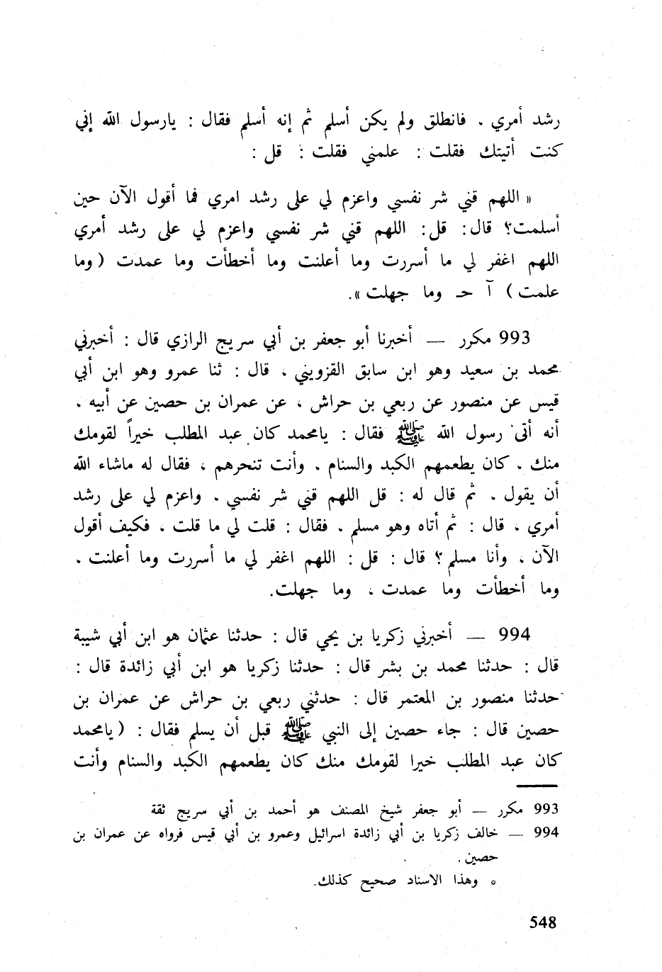 993 - مُكَرر أخبرنَا أَبُو جَعْفَر بن أبي سُرَيج الرَّازِيّ قَالَ أَخْبرنِي مُحَمَّد بن سعيد وَهُوَ ابْن سَابق الْقزْوِينِي قَالَ ثَنَا عَمْرو وَهُوَ ابْن أبي قيس عَن مَنْصُور عَن ربعي بن حِرَاش عَن عمرَان بن حُصَيْن عَن أَبِيه أَنه أُتِي رَسُول الله صلى الله عَلَيْهِ وَسلم فَقَالَ يَا مُحَمَّد كَانَ عبد الْمطلب خيرا لقَوْمك مِنْك كَانَ يُطعمهُمْ الكبد والسنام وَأَنت تنحرهم فَقَالَ لَهُ مَا شَاءَ الله أَن يَقُول ثمَّ قَالَ لَهُ