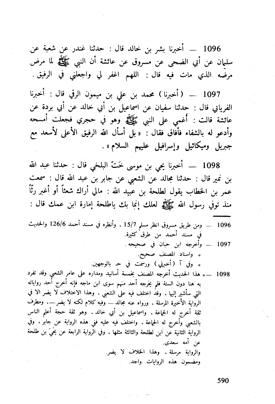 1098 - أخبرنَا يحي بن مُوسَى خت الْبَلْخِي قَالَ حَدثنَا عبد الله بن نمير قَالَ حَدثنَا مجَالد عَن الشّعبِيّ عَن جَابر بن عبد الله قَالَ سَمِعت عمر بن الْخطاب يَقُول لطلْحَة بن عبيد الله مَالِي أَرَاك شعثا أَو أغبر رثا مُنْذُ توفّي رَسُول الله صلى الله عَلَيْهِ وَسلم الله عَلَيْهِ وَسلم لَعَلَّك إِنَّمَا بك يَا طَلْحَة إِمَارَة ابْن عمك قَالَ