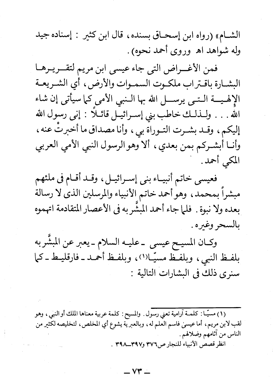 1 مسيا: كلمة آرامية تعني رسول. والمسيح: كلمة عربية معناها الملك أو النبي، وهو لقب لابن مريم، أما عيسى فاسم العلم له، وبالعبرية يشوع أي المخلص، لتخليصه لكثير من الناس من آثامهم وضلالهم.