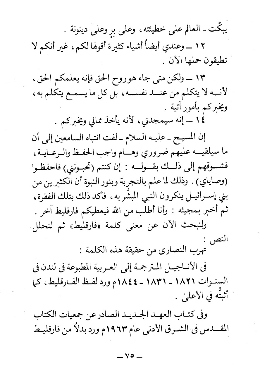 وفي كتاب العهد الجديد الصادر عن جمعيات الكتاب المقدس في الشرق الأدنى عام 1963 م ورد بدلا من فارقليط