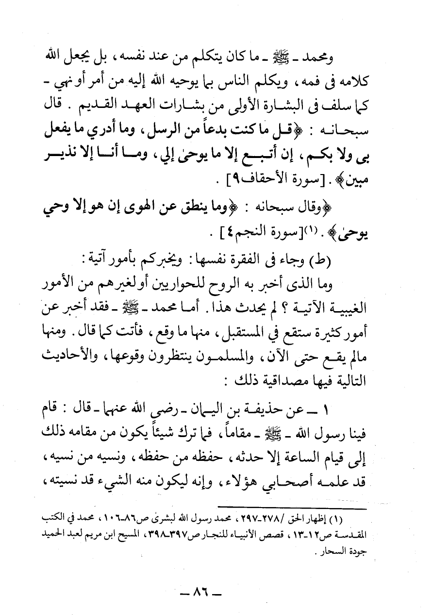 وقال سبحانه: {وَمَا يَنْطِقُ عَنِ الْهَوَى إِنْ هُوَ إِلاَّ وَحْيٌ يُوحَى} 1 سورة النجم 4.