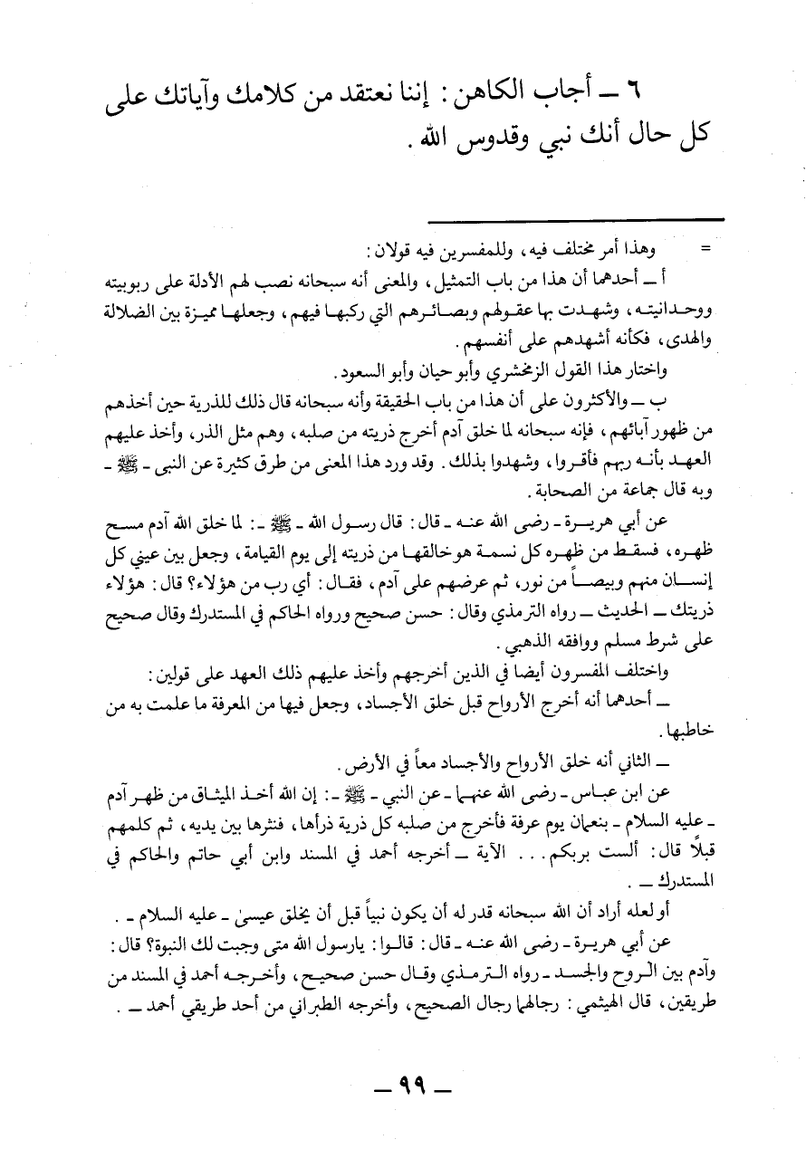 6- أجاب الكاهن: إننا نعتقد من كلامك وآياتك على كل حال أنك نبي وقدوس الله.