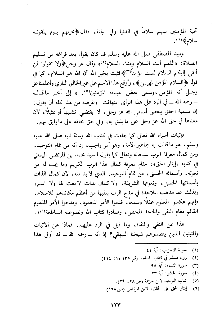 فالبيهقي - رحمه الله تعالى - يرى ضرورة الاستدلال لإثبات الصانع، بالأدلة الشرعية التي ورد بها القرآن الكريم، وهي نفس الآيات التي يستلزم العلم بها العلم بالله تعالى، استلزام العلم بالشعاع العلم بوجود مصدره. وهي - ولا ريب - طريقة سليمة، خالية من التعقيد، وجلية عن الغموض الذي اكتنف طرق المتكلمين، ولا غرو فهي طريقة القرآن الكريم التي أراد الله سبحانه وتعالى من خلالها أن تكون في متناول جميع الطبقات، وفي مستوى جميع العقول.