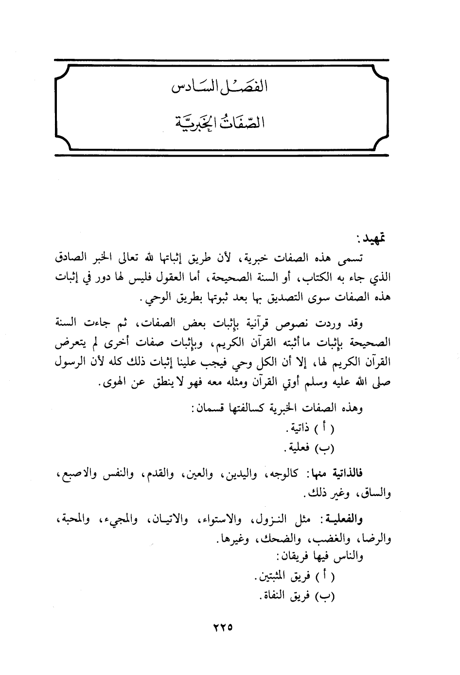 وإذا كان - رحمه الله - لم يسهب في بيان هذه الصفات على مثل ما فعل في صفات الذات السالفة، فإنه بين طريقته إجمالاً، بمعنى أن الطريق