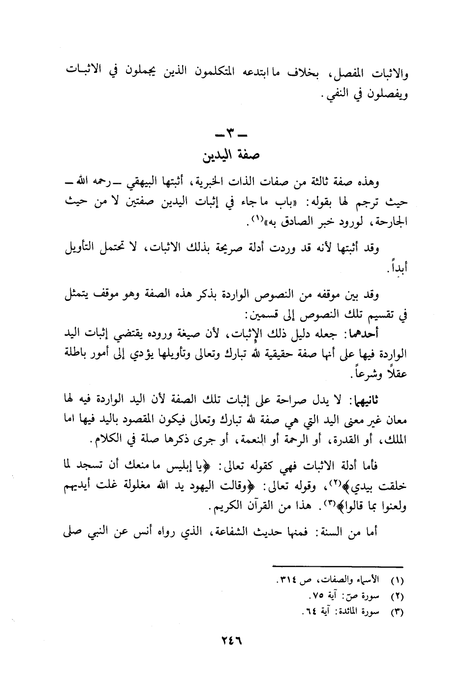 فما أثبته السلف لله سبحانه وتعالى من صفة الكلام الحقيقي المسموع، ومن أنه يتكلم متى شاء كيف شاء هو ما يتفق مع الأدلة الصحيحة والمعقول الصريح، وما ذهب إليه البيهقي والأشاعرة عموماً من القول بالكلام النفسي لا يسعفه الدليل، ولا يكاد يتصوره عقل.