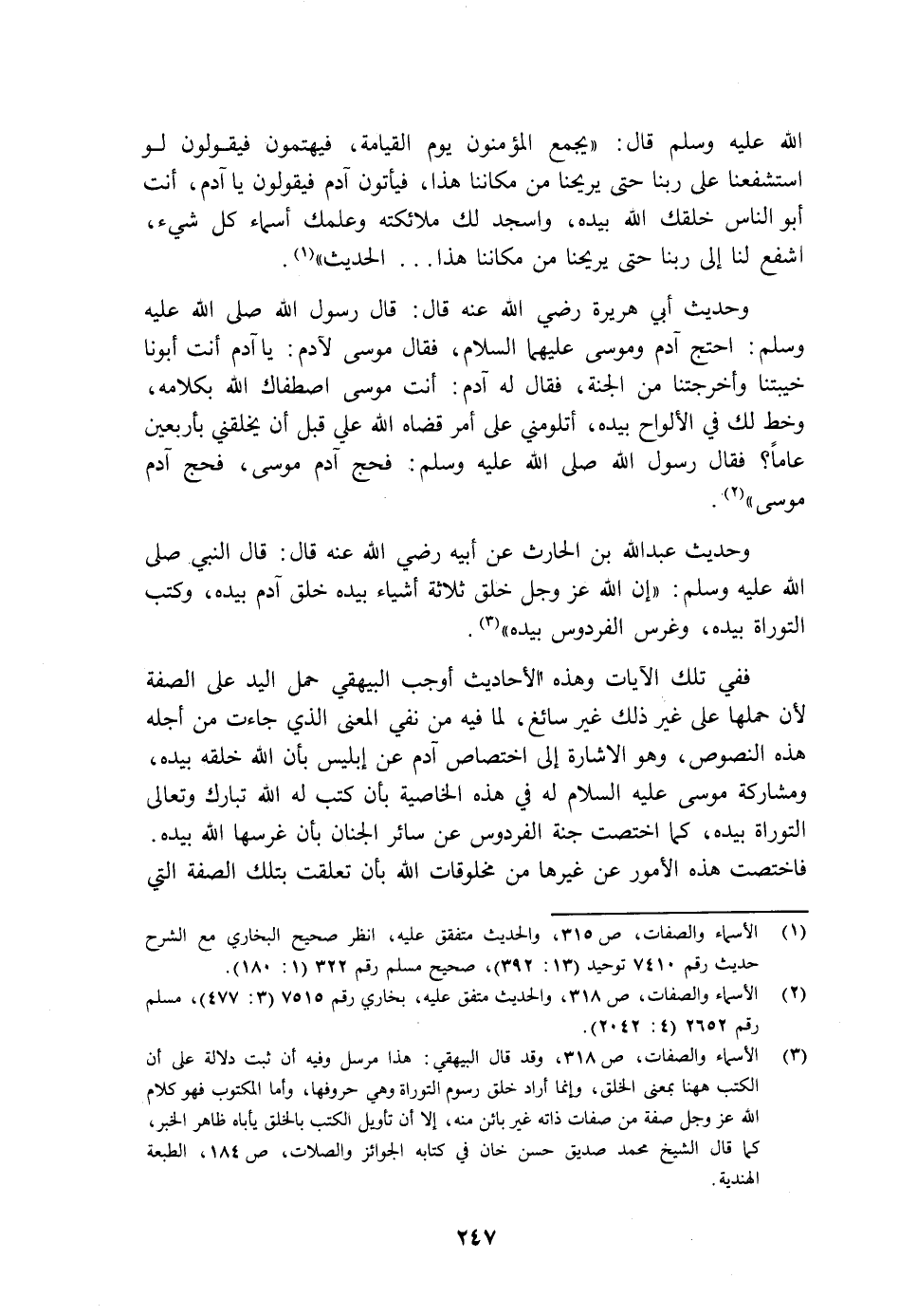 يقول الحافظ ابن حجر معقباً على كلام البيهقي السابق: "وحاصل الاحتجاج للنفي الرجوع إلى القياس على أصوات المخلوقين، لأنها التي عهد أنها ذات مخارج"1.