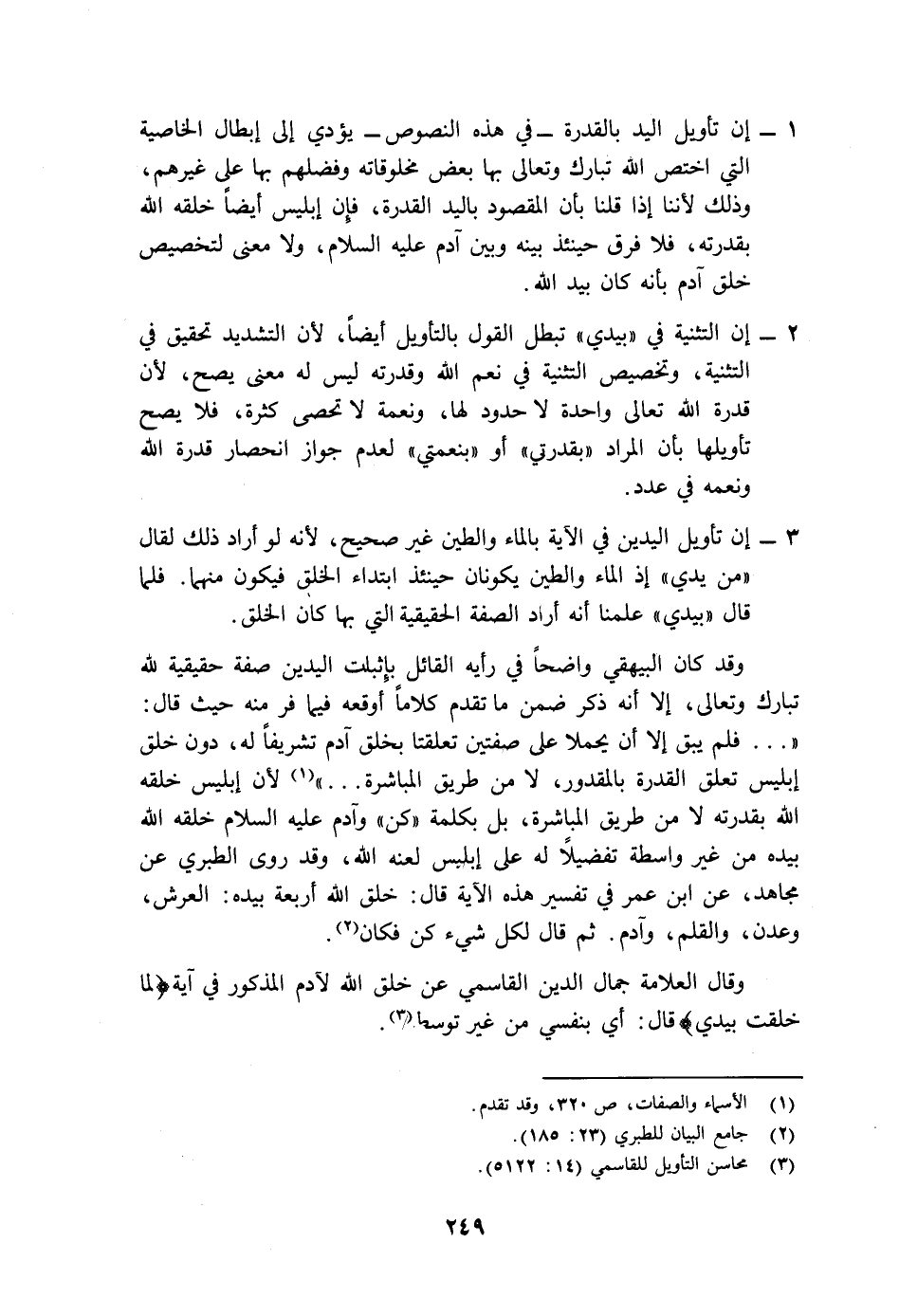 كما ذكر - رحمه الله - أن الكلام في هذه القضية إنما حدث في حدود المئة الثالثة، وانتشر في المئة الرابعة، بمعنى أن الكلام فيها حدث بعد أن لم يكن موجوداً في عهد الصحابة والتابعين، بسبب ما وقع من جدال مرير بين السلف والمعتزلة في مسألة القول بخلق القرآن.