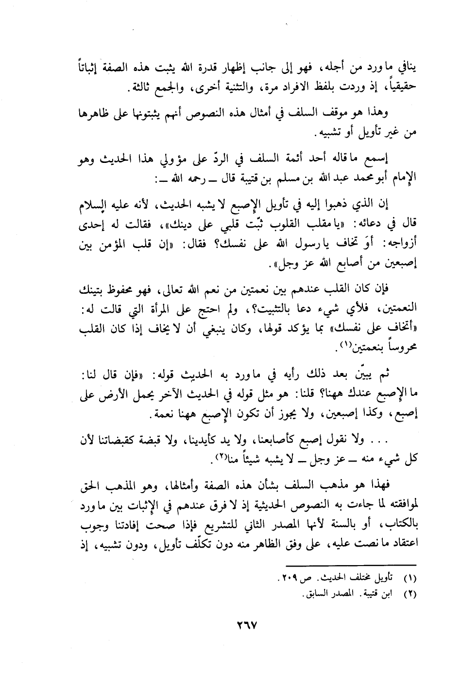 فبهذا نكفرهم كما أكفر الله به أئمتهم من قريش، وقال: {سَأُصْلِيهِ سَقَرَ} 1 إذ قال: {إِنْ هَذَا إِلاَّ قَوْلُ الْبَشَرِ} 2 لأن كلّ إفك وتقول وسحر واختلاق، وقول البشر كله لا شك في شيء منه أنه مخلوق، فاتفق من الكفر بين الوليد بن المغيرة وجهم بن صفوان الكلمة والمراد في أنه مخلوق"3.