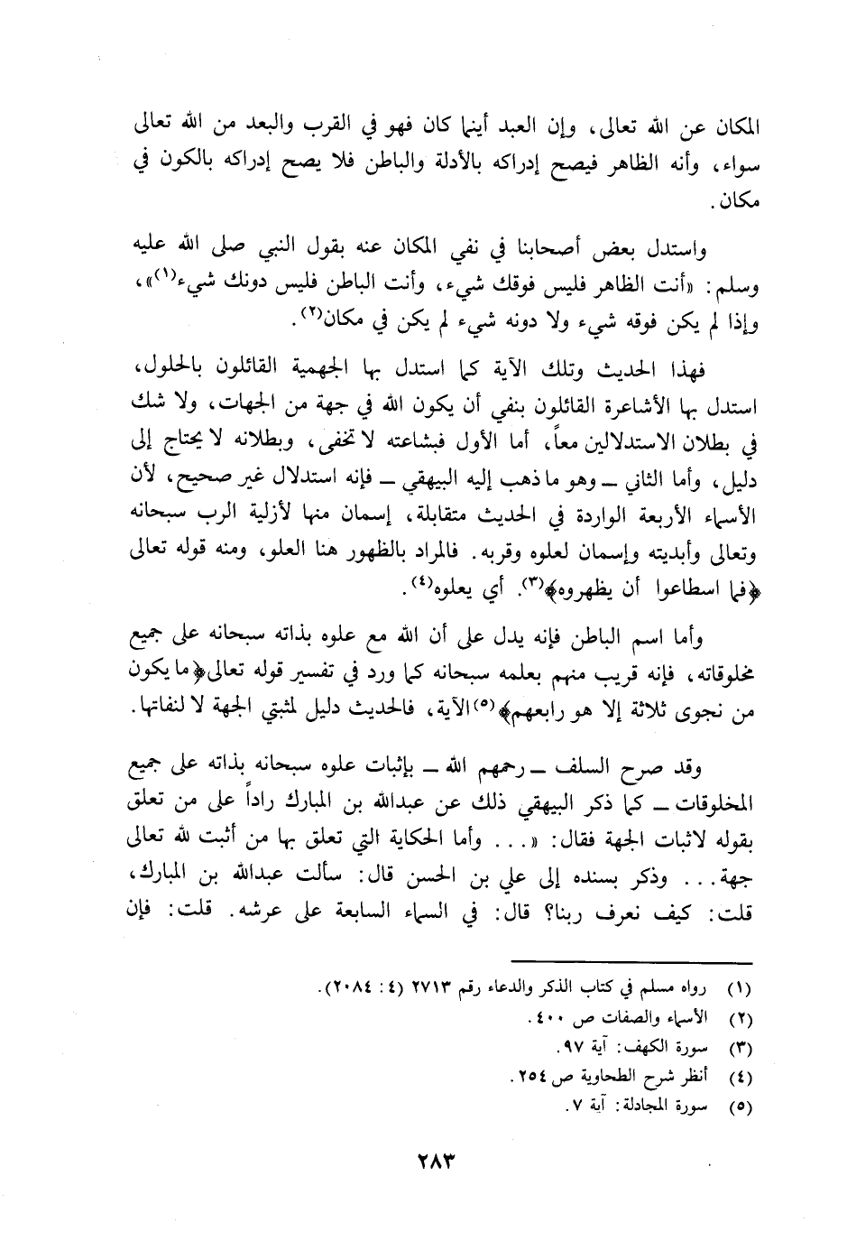ويتجلّى رأيه في ترجمته للصفة، حيث يفرق فيها بين ما يرى إثباته وما يرى تأويله.