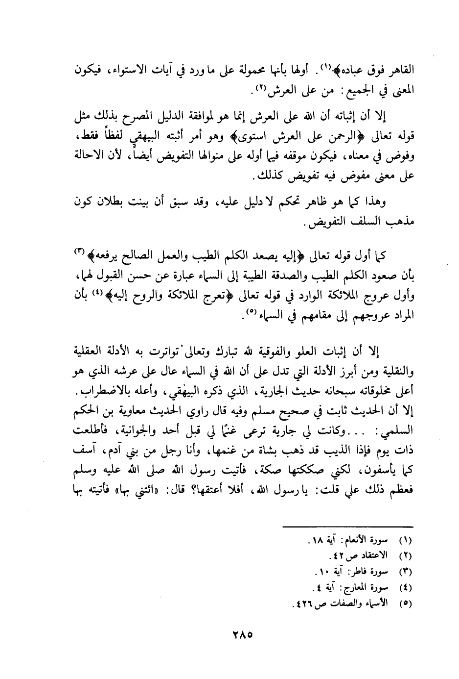3 الأسماء والصفات ص: 302. والحديث رواه متفق عليه. انظر: صحيح البخاري كتاب التوحيد، حديث رقم: 7444،13/423، وصحيح مسلم رقم: 296 ((إيمان)) 1/163.