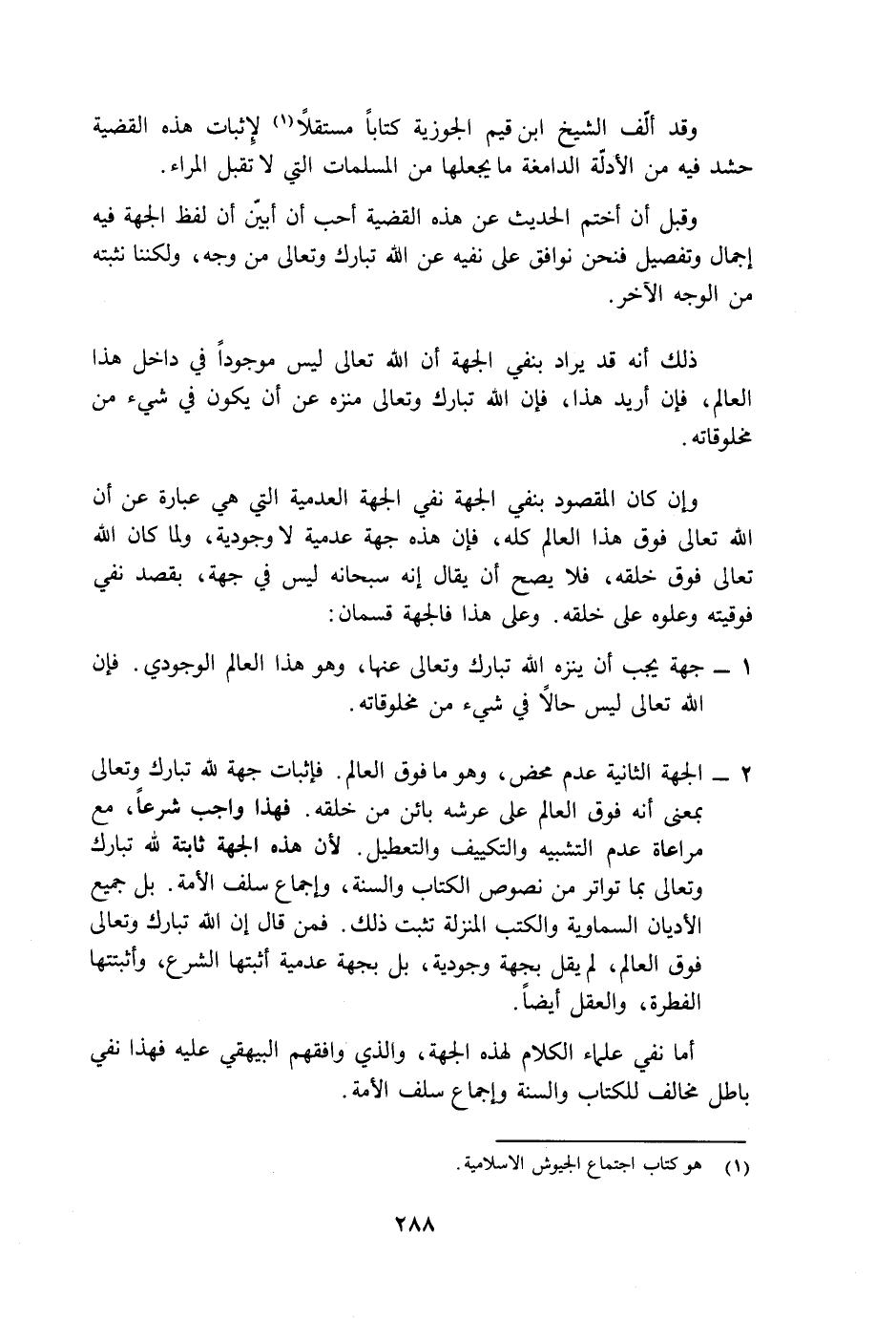 ذلك كلّه أكبر شاهد على اضطرابه في قضية الصفات، وجهله بمذهب الإمام أحمد، فلا يكون حجة على مذهب الحنابلة، ولا ناطقاً أميناً بآرائهم، رحمه الله، وغفر لنا وله ولجميع المسلمين.