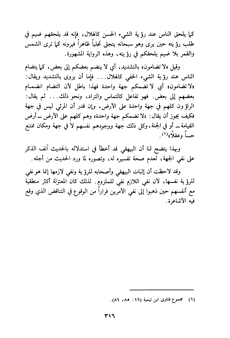 ويقول في الكف بالنسبة لله تبارك وتعالى، إن المراد به ملكه وسلطانه، ويستدل على ذلك بما ذكر من أن عمر بن الخطاب رضي الله عنه كان كثيراً ما يردد في خطبته على المنبر: