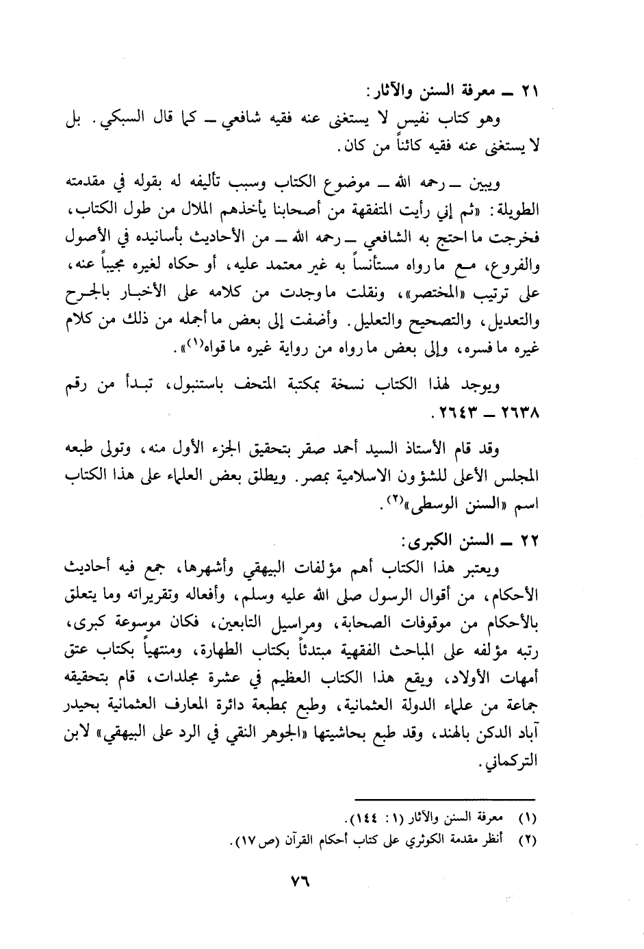فيه، ولو علم ذلك لما تردد عن القول بما يدل عليه، وقال بعد ذلك - مبرراً تفضيله لمذهب الشافعي على سواه: "وقد قابلت - بتوفيق الله تعالى - أقوال كل واحد منهم بمبلغ علمي من كتاب الله عز وجل، ثم بما جمعت من السنن والآثار في الفرائض والنوافل، والحلال، والحرام، والحدود والأحكام، فوجدت الشافعي - رحمه الله - أكثرهم اتباعاً، وأقواهم احتجاجاً وأصحهم قياساً، وأوضحهم إرشاداً.. فخرجت - بحمد الله ونعمته - أقواله مستقيمة وفتاواه صحيحة"1.