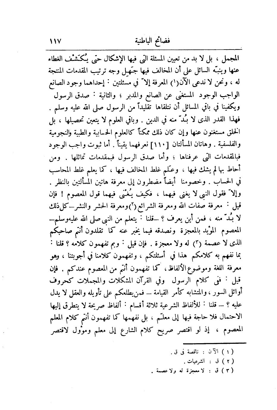 وَذَلِكَ مُمكن فَلم يكن الانشقاق أمرا دَائِما زَمَانا طَويلا فَلَيْسَ يمْتَنع أَن يخْتَص بمشاهدته من حدق إِلَيْهِ بَصَره مِمَّن كَانَ حول رَسُول الله صلى الله عَلَيْهِ وَسلم حَيْثُ احْتج على قُرَيْش بانشقاق الْقَمَر وَقَالَ قَائِلُونَ أَيْضا يحْتَمل أَن يكون الله تَعَالَى خصص بِرُؤْيَة ذَلِك من حَاج النَّبِي صلى الله عَلَيْهِ وَسلم فِي تِلْكَ السَّاعَة وناظره حَيْثُ قَالَ صلى الله عَلَيْهِ وَسلم آيتي أَنكُمْ ترفعون روؤسكم فترون الْقَمَر منشقا وحجب الله أبصار سَائِر الْخلق عَن رُؤْيَته بحجاب اَوْ سَحَاب اَوْ تسليط عقله وَصرف دَاعِيَة النّظر لمصْلحَة الْخلق فِيهِ حَتَّى لَا يتحدى لنَفسِهِ بعض الْكَذَّابين فِي الْأَمْصَار فيستدل بِهِ على صدق نَفسه اَوْ يكون معْجزَة للنَّبِي صلى الله عَلَيْهِ وَسلم من وَجْهَيْن خارقين للْعَادَة احدهما إِظْهَاره لَهُم وَالْآخر اخفاؤه عَن غَيرهم وَهَذِه الِاحْتِمَالَات ذكرهَا الْعلمَاء حَتَّى قَالَ بَعضهم ان انْشِقَاق الْقَمَر ثَبت بِالْقُرْآنِ وَهُوَ قَوْله تَعَالَى {اقْتَرَبت السَّاعَة وَانْشَقَّ الْقَمَر} وَالْكَلَام فِيهِ طَوِيل وعَلى الْأَحْوَال كلهَا فَمَا بلغ حد التَّوَاتُر لَا يتَصَوَّر التشكك فِيهِ هَذِه قَاعِدَة مَعْلُومَة عَلَيْهَا تبنى جَمِيع قَوَاعِد الدّين ولولاه لما حصلت الثِّقَة بأخبار التَّوَاتُر وَلما عرفنَا شَيْئا من أَقْوَال رَسُول الله صلى الله عَلَيْهِ وَسلم إِلَّا بِالْمُشَاهَدَةِ وَالْكَلَام فِي هَذَا يحْتَمل الإطناب وَلكنه بعيد عَن مَقْصُود الْكتاب فَرَأَيْت الإيجاز فِيهِ أولى
