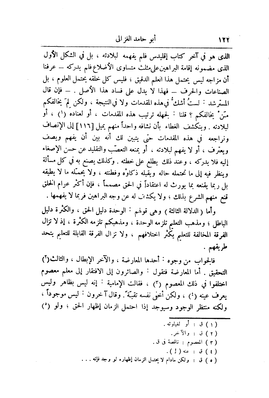 فالمرتبة الأولى وَهِي الَّتِي توجب التخطئة والتضليل والتبديع هِيَ أَن تصادف عاميا يعْتَقد أَن اسْتِحْقَاق الْإِمَامَة فِي أصل الْبَيْت وَأَن الْمُسْتَحق الْيَوْم المتصدي لَهَا مِنْهُم وَأَن الْمُسْتَحق لَهَا فِي الْعَصْر الأول كَأَن هُوَ على رضى الله عَنهُ فَدفع عَنْهَا بِغَيْر اسْتِحْقَاق وَزعم مَعَ ذَلِك أَن الإِمَام مَعْصُوم عَن الْخَطَأ والزلل فانه لَا بُد أَن يكون مَعْصُوما وَمَعَ ذَلِك فَلَا يسْتَحل سفك دمائنا