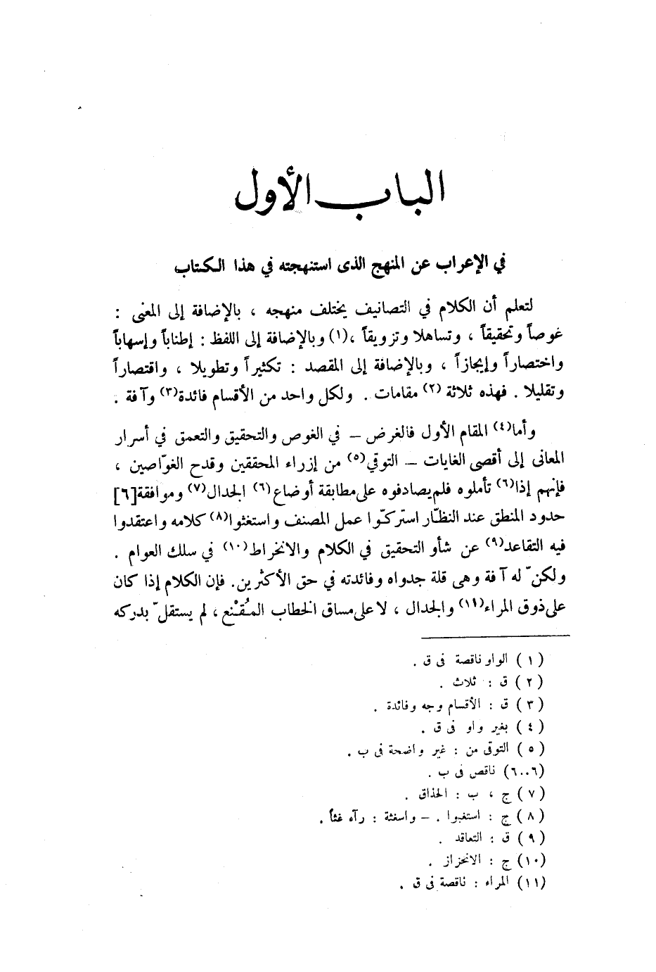 الرَّابِع هُوَ أَن يقدم فِي اول كَلَامه أَن الْبَاطِل ظَاهر جلي وَالْحق دَقِيق بِحَيْثُ لَو سَمعه الْأَكْثَرُونَ لأنكروه ونفروا عَنهُ وان طلاب الْحق والقائلين بِهِ من بَين طلاب الْجَهْل أَفْرَاد وآحاد ليهون عَلَيْهِ التميز عَن الْعَامَّة فِي إِنْكَار نظر الْعقل وظواهر مَا ورد بِهِ النَّقْل