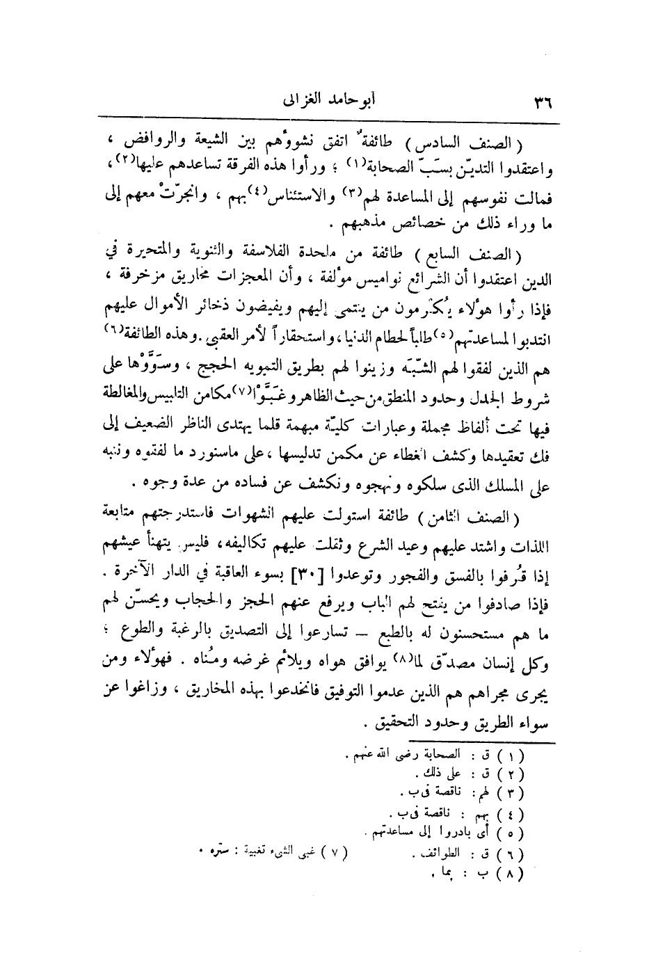 رَابِع وتسلسل إِلَى حد يبطل التفاهم والتفهيم وَلَا يُمكن التحكم بِأَن الْحَائِز الرُّتْبَة الثَّانِيَة دون الثَّالِثَة أَو الثَّالِثَة دون الرَّابِعَة المسلك الثَّانِي مُعَارضَة الْفَاسِد بالفاسد وَهُوَ أَن يتَنَاوَل جَمِيع الْأَخْبَار على نقيض مَذْهَبهم مثلا يُقَال قَوْله لَا تدخل الْمَلَائِكَة بَيْتا فِيهِ صُورَة أى لَا يدْخل الْعقل دماغا فِيهِ التَّصْدِيق بالمعصوم وَقَوله إِذا ولغَ الْكَلْب فِي إِنَاء أحدكُم فليغسله سبعا أى إِذا نكح الباطني بنت أحدكُم فليغسلها عَن درن الصُّحْبَة بِمَاء الْعلم وصفاء الْعَمَل بعد أَن يعفرها بِتُرَاب الإذلال أَو يَقُول قَائِل النِّكَاح لَا ينْعَقد بِغَيْر شُهُود وَولى وَأما قَوْله كل نِكَاح لَا يحضرهُ أَرْبَعَة فَهُوَ سفاح مَعْنَاهُ أَن كل اعْتِقَاد لم يشْهد لَهُ الحلفاء الْأَرْبَعَة أَبُو بكر وَعمر وَعُثْمَان وَعلي فَهُوَ بَاطِل وَقَوله لَا نِكَاح إِلَّا بولِي وشاهدي عدل أَي لَا وقاع إِلَّا بِذكر وأنثيين إِلَى غير ذَلِك من الترهات وَالْمَقْصُود من ذكر هَذَا الْقدر مُعَارضَة الْفَاسِد بالفاسد وتعريف الطَّرِيق فِي فتح هَذَا الْبَاب حَتَّى إِذا اهتديت إِلَيْهِ لم تعجز عَن تَنْزِيل كل لَفْظَة من كتاب أَو سنة على نقيض معتقدهم فَإِن زَعَمُوا أَنكُمْ أنزلتم الصُّورَة على الْمَعْصُوم فِي قَوْله لَا تدخل الْمَلَائِكَة بَيْتا فِيهِ صُورَة فَأَي مُنَاسبَة بَينهمَا قلت وَأَنْتُم نزلتم الثعبان على الْبُرْهَان وَالْأَب فِي حق عِيسَى على الإِمَام وَاللَّبن على الْعلم فِي أَنهَار اللَّبن فِي الْجنَّة وَالْجِنّ على الباطنية وَالشَّيَاطِين على الظَّاهِرِيَّة وَالْجِبَال على الرِّجَال فَمَا الْمُنَاسبَة فَإِن قلت الْبُرْهَان يقضم الشّبَه كَمَا يقضم الثعبان غَيره وَالْإِمَام يُفِيد الْوُجُود العلمي كَمَا يُفِيد الْأَب الْوُجُود الشخصي وَاللَّبن يغذي الشَّخْص كَمَا