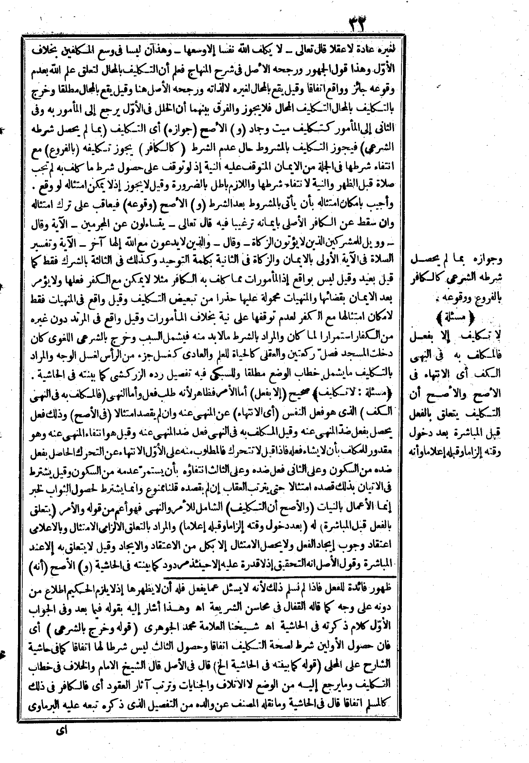 عليه وسلّم للحاجة إلى بيانه حذرا من التكليف بما لا يطاق، بخلاف غير المكلف بالعمل به، وقيل لا يبقى كذلك مطلقا لأن الله أكمل الدين قبل وفاته لقوله {اليوم أكملت لكم دينكم} وقيل يبقى كذلك مطلقا قال تعالى في متشابه الكتاب {وما يعلم تأويله إلا الله} إذ الوقف هنا كما عليه جمهور العلماء، وإذا ثبت في الكتاب ثبت في السنة إذ لا قائل بالفرق. (و) الأصح (أن الأدلة النقلية قد تفيد اليقين بانضمام غيرها) من تواتر ومشاهدة كما في أدلة وجوب الصلاة، فإن الصحابة علموا معانيها المرادة بالقرائن المشاهدة، ونحن علمناها بواسطة نقل القرائن إلينا تواترا، وقيل تفيده مطلقا وعزي للحشوية، وقيل لا تفيده مطلقا لانتفاء العلم بالمراد منها قلنا يعلم بما ذكر آنفا.