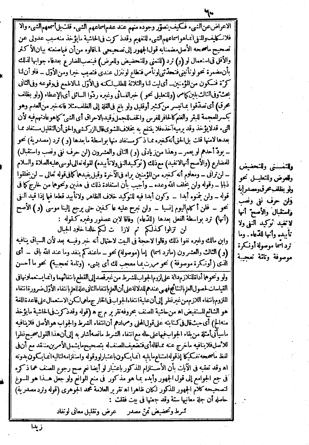 (و) العشرون (لولا) ومثلها لو ما. (حرف معناه في) دخوله على (الجملة الاسمية امتناع جوابه لوجود شرطه) نحو لولا زيد، أي موجود لأهنتك امتنعت الإهانة لوجود زيد، فزيد الشرط وهو مبتدأ محذوف الخبر لزوما. (وفي) دخوله على الجملة (المضارعية التحضيض) أي الطلب بحثّ نحو {لولا تستغفرون الله} أي استغفروه ولا بد. (والعرض) من زيادتي وهو طلب بلين نحو {لولا أخرتني} أي تؤخرني {إلى أجل قريب} (و) في دخوله على الجملة (الماضية التوبيخ) نحو {لولا جاءوا عليه بأربعة شهداء} وبخهم الله على عدم المجيء بالشهداء بما قالوه من الإفك، وهو في الحقيقة