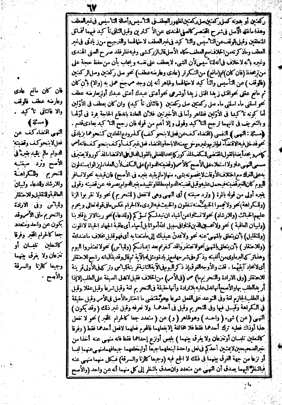 (مسألة الأصح) على القول بإثبات الكلام النفسي. (أن صيغة أفعل) . والمراد بها كل ما يدل ولو بواسطة على الأمر من صيغه المحتملة لغير الوجوب، كاضرب وصلّ وصه ولينفق. (مختصة بالأمر النفسي) بأن تدل عليه وضعا دون غيره، وقيل لا فلا تدل عليه إلا بقرينة كصل لزوما، وعليه فقيل هو للوقف بمعنى عدم الدراية بما وضعت له حقيقة مما وردت له من أمر وتهديد وغيرهما، وقيل للاشتراك بين المعاني الآتية المشتركة، أما صحة التعبير عن الأمر بما يدل عليه فلا يختص بها صيغة فعل قطعا، بل تأتي في غيرها كألزمتك وأوجبت عليك، أما المنكرون للنفسي فلا حقيقة للأمر وسائر أقسام الكلام عندهم إلا العبارات. (وترد) صيغة افعل بالمعنى السابق لستة وعشرين معنى على ما في الأصل، وإلا فقد أوصلها بعضهم لنيف وثلاثين وليميز بعضها عن بعض بالقرائن. (للوجوب) نحو أقيموا الصلاة (وللندب) نحو {فكاتبوهم إن علمتم فيهم خيرا} (وللإباحة) نحو {كلوا من طيبات} أي مما يستلذ من المباحات (وللتهديد) نحو {اعملوا ما شئتم} قيل ويصدق مع التحريم والكراهة. (وللإرشاد) نحو {واستشهدوا شهيدين من رجالكم} والمصلحة فيه دنيوية بخلافها في الندب (ولإرادة الامتثال) كقولك لغير رقيقك عند العطش اسقني ماء. (وللإذن) كقولك لمن طرق الباب ادخل وبعضهم أدرج هذا في الإباحة. (وللتأديب) كقولك لغير مكلف كل مما يليك وبعضهم أدرج هذا في الندب، والأوّل فرق بأن الأدب متعلق بمحاسن الأخلاق وإصلاح العادات والندب بثواب الآخرة أما أكل المكلف مما يليه فمندوب، ومما يلي غيره مكروه حيث لا إيذاء وإلا فحرام (وللإنذار) نحو {قل تمتعوا فإن مصيركم إلى النار} ويفارق التهديد بوجوب اقترانه بالوعيد كما في الآية، وبأن التهديد التخويف والإنذار إبلاغ المخوف منه. (وللامتنان) نحو؛ {كلوا مما رزقكم الله} ويفارق الإباحة باقترانه بذكر ما يحتاج إليه (وللإكرام) نحو {ادخلوها بسلام آمنين} (وللتسخير) أي