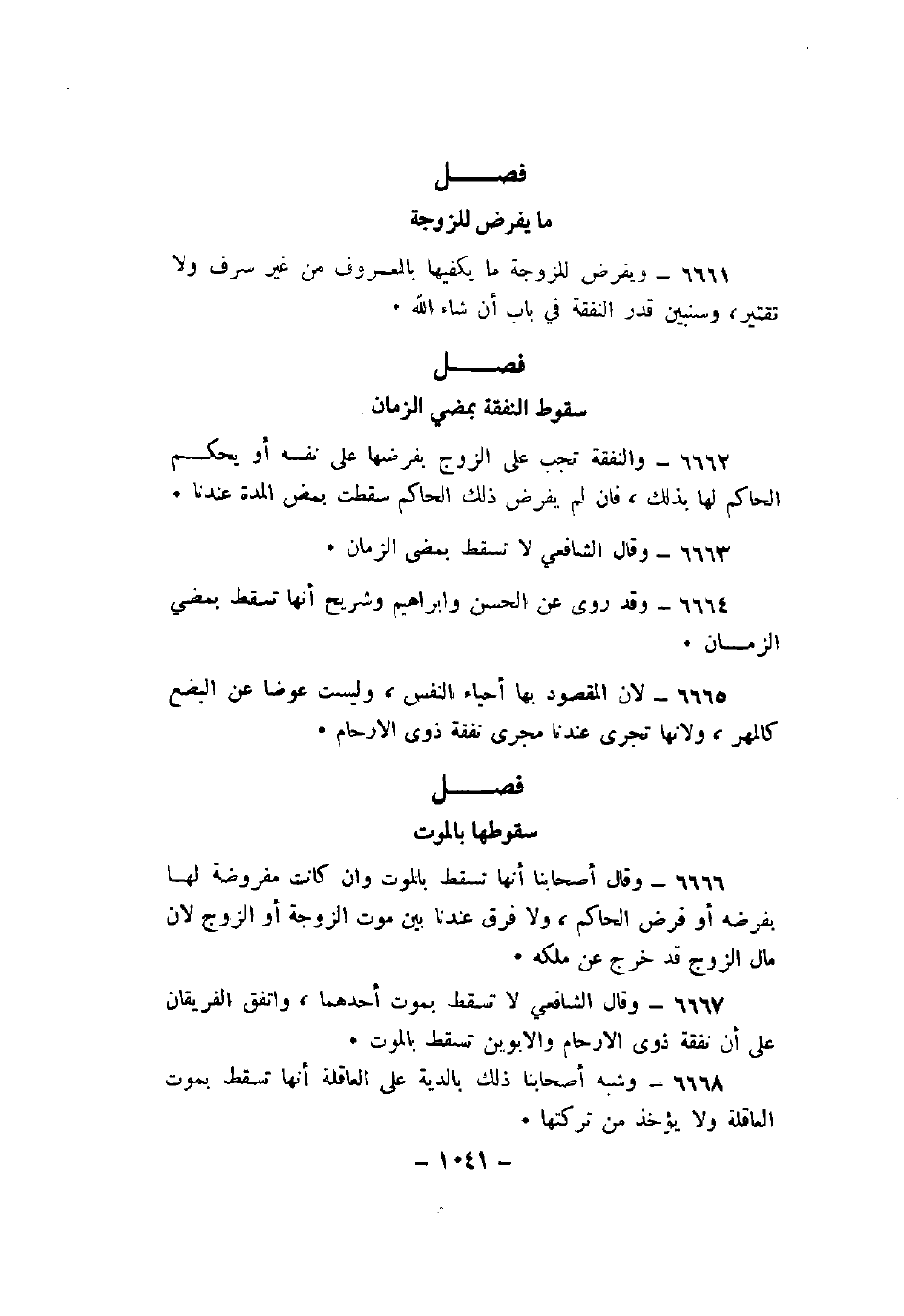 6667 - وقال الشافعي لا تسقط بموت أحدهما، واتفق الفريقان على أن نفقة ذوي الأرحام والأبوين تسقط بالموت.
