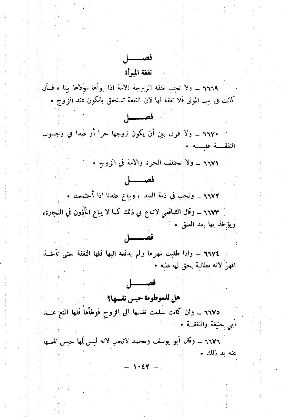 6670 - ولا فرق بين أن يكون زوجها حرا أو عبدا في وجوب النفقة عليه.