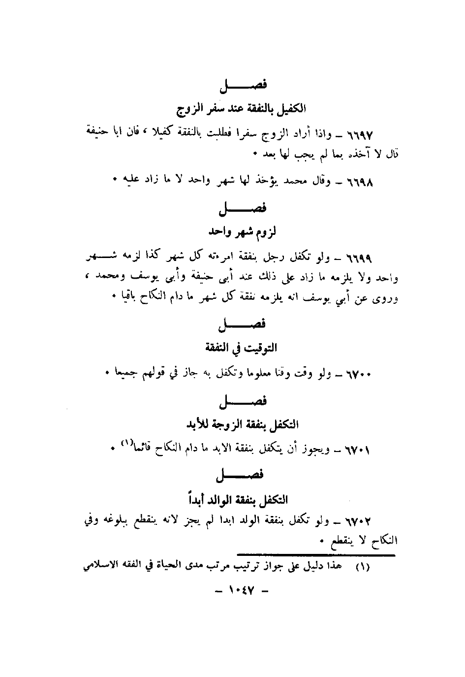 6701 - ويجوز أن يتكفل بنفقة الابد ما دام النكاح قائما.