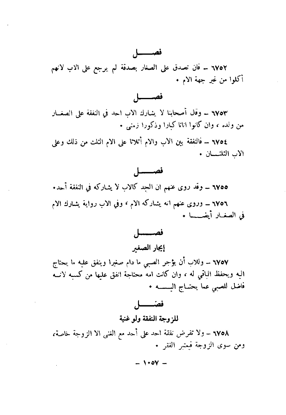 6758 - ولا تفرض نفقة أحد على أحد مع الغنى إلا الزوجة خاصة، ومن سوى الزوجة فيعتبر الفقر.