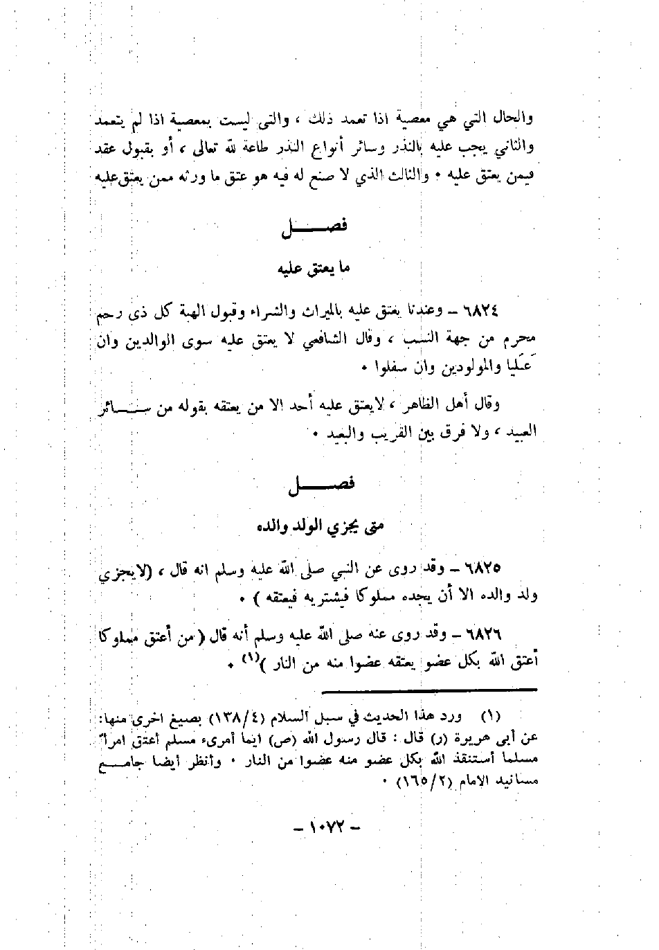6825 - وقد روى عن النبي صلى الله عليه وسلم أنه قال، (لا يجزي ولد والده إلا أن يجده مملوكا فيشتريه فيعتقه).