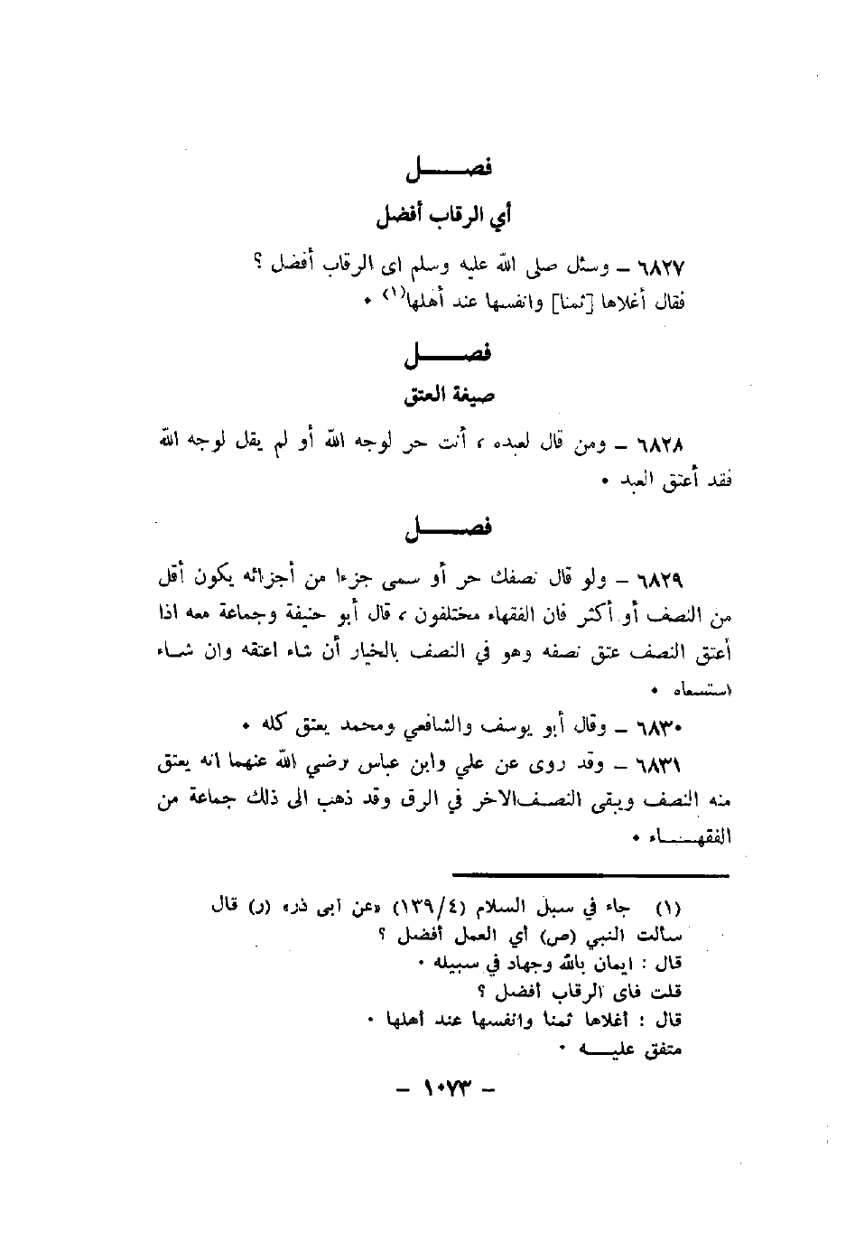 6831 - وقد روى عن علي وابن عباس رضي الله عنهما أنه يعتق منه النصف ويبقى النصف الأخر في الرق وقد ذهب إلى ذلك جماعة من الفقهاء.