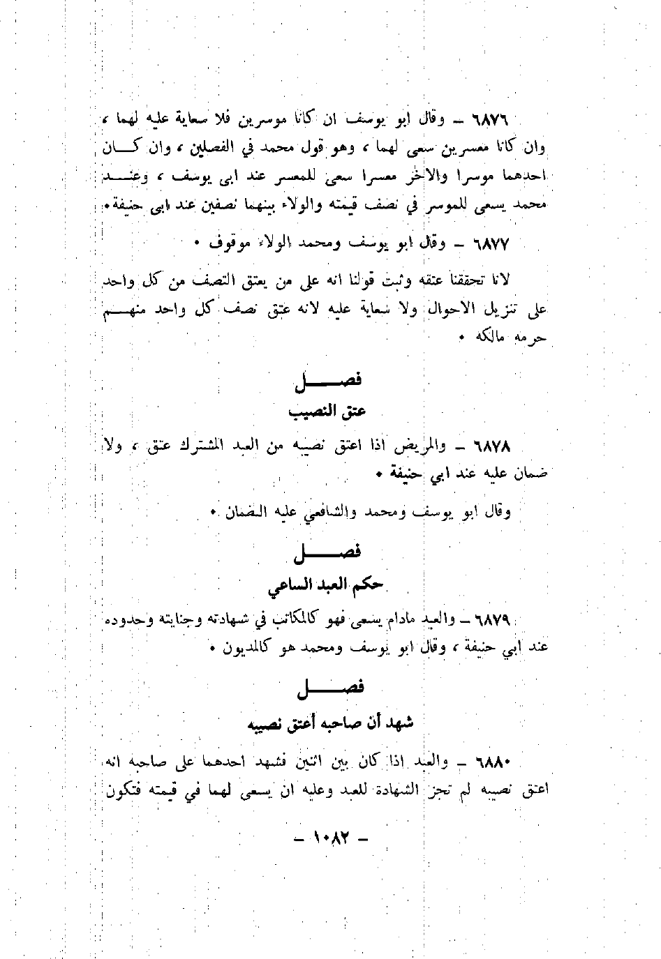 6879 - والعبد مادام يسعى فهو كالمكاتب في شهادته وجنايته وحدوده عند أبي حنيفة، وقال أبو يوسف ومحمد هو كالمديون.