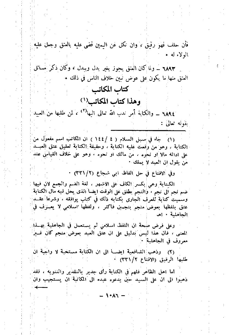 6893 - ولما كان العتق يجوز بغير بدل وببدل، وكان ذكر مسائل العتق منها ما يكون على عوض نبين خلاف الناس في ذلك.