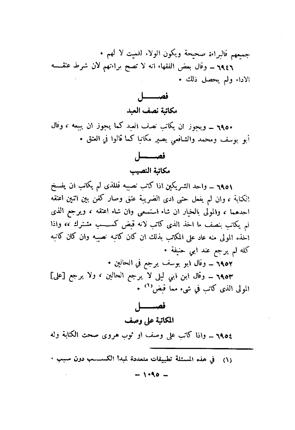 6953 - وقال ابن أبي ليلى لا يرجع الحالين، ولا يرجع [على] المولى الذي كاتب في شيء مما قبض.