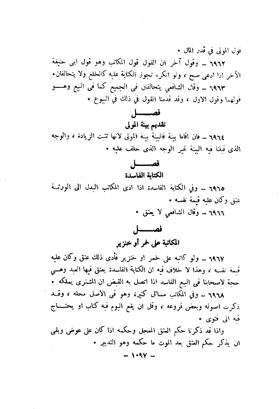 6968 - وفي المكاتب مسائل كثيرة وهو في الأصل محله، وقد ذكرت أصوله وبعض فروعه، وقل أن يقع اليوم فيه كتاب أو يحتاج فيه إلى فتوى.