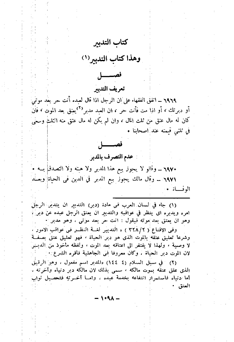 6969 - اتفق الفقهاء على أن الرجل إذا قال لعبده أنت حر بعد موتي أو دبرتك، أو إذا مت فأنت حر، أن العبد مدبر يعتق بعد الموت، فأن كان له مال عتق من ثلث المال، وأن لم يكن له مال عتق منه الثلث وسعى في ثلثي قيمته عند أصحابنا.