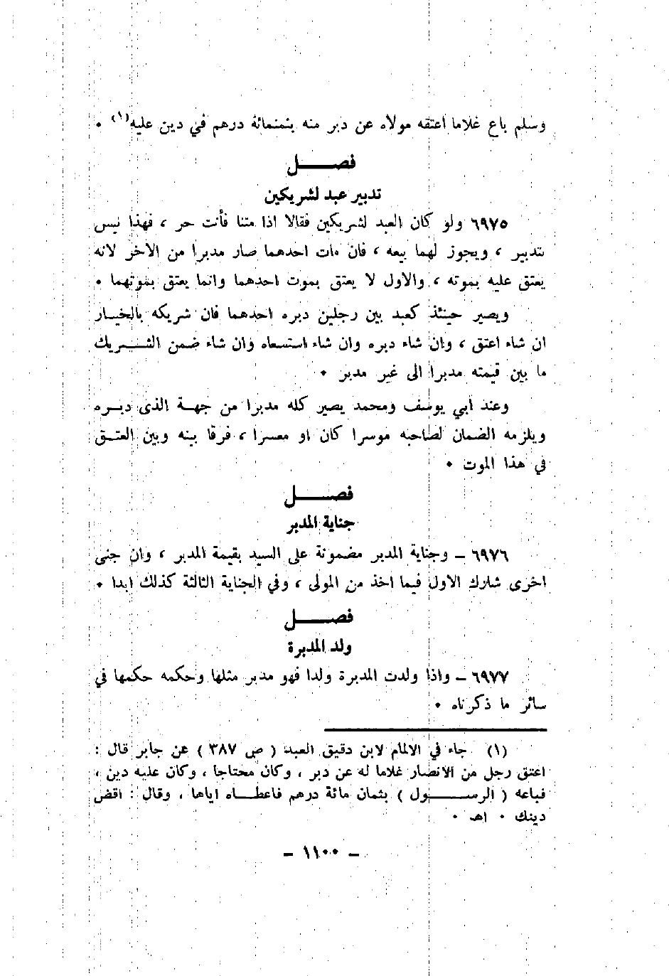 6976 - وجناية المدبر مضمونة على السيد بقيمة المدبر، وأن جنى أخرى شارك الأول فيما أخذ من المولى، وفي الجناية الثالثة كذلك ابدا.