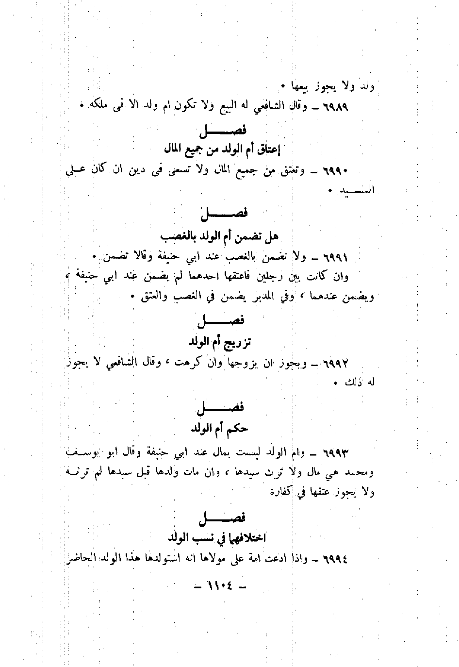 6993 - وأم الولد ليست بمال عند أبي حنيفة وقال أبو يوسف ومحمد هي مال ولا ترث سيدها، وأن مات ولدها قبل سيدها لم ترثه ولا يجوز عتقها في كفارة.
