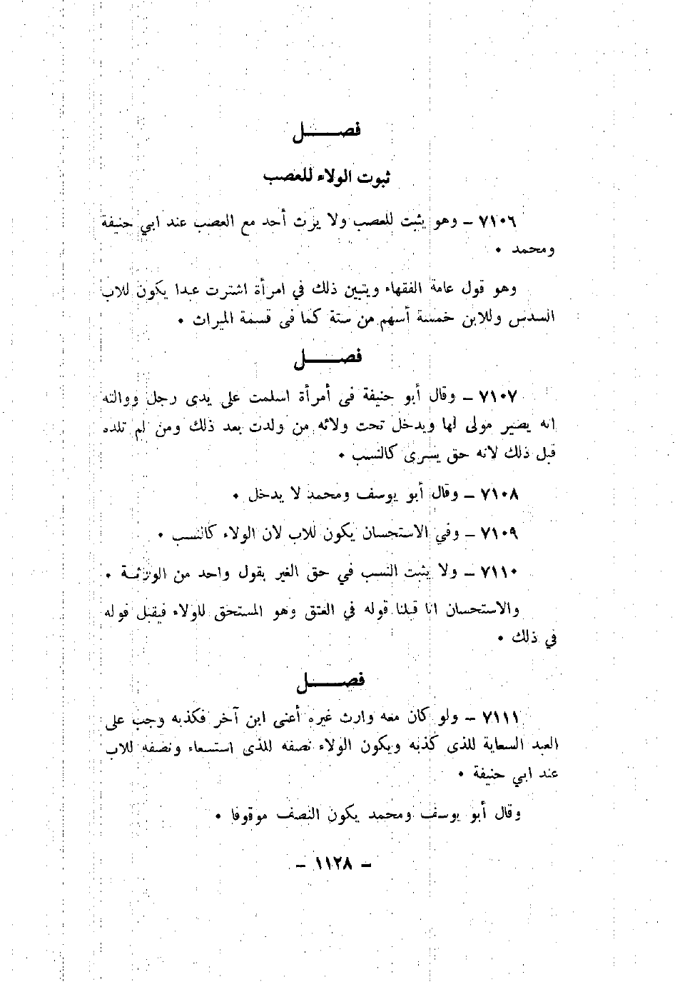 7106 - وهو يثبت للعصب ولا يرث أحد مع العصب عند أبي حنيفة ومحمد.