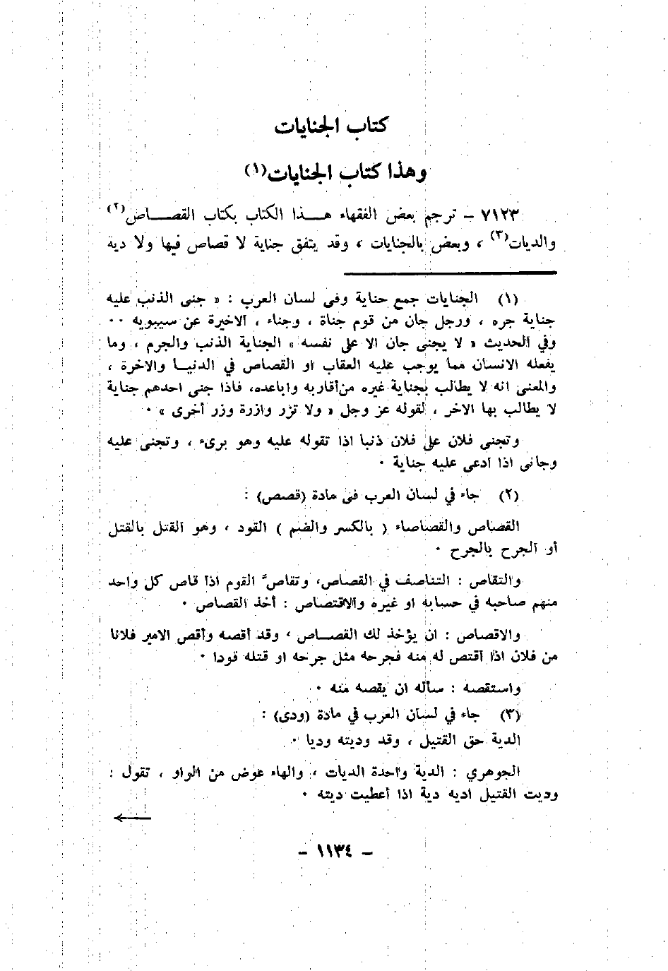 7123 - ترجم بعض الفقهاء هذا الكتاب بكتاب القصاص والديات، وبعض بالجنايات، وقد يتفق جناية لا قصاص فيها ولا دية