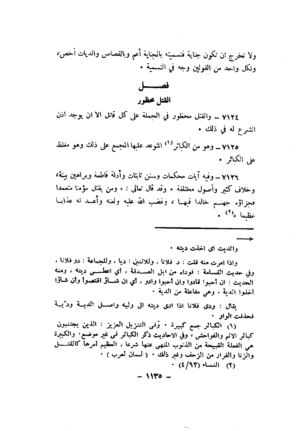 7124 - والقتل محظور في الجملة على كل قاتل إلا أن يوجد أذن الشرع له في ذلك.