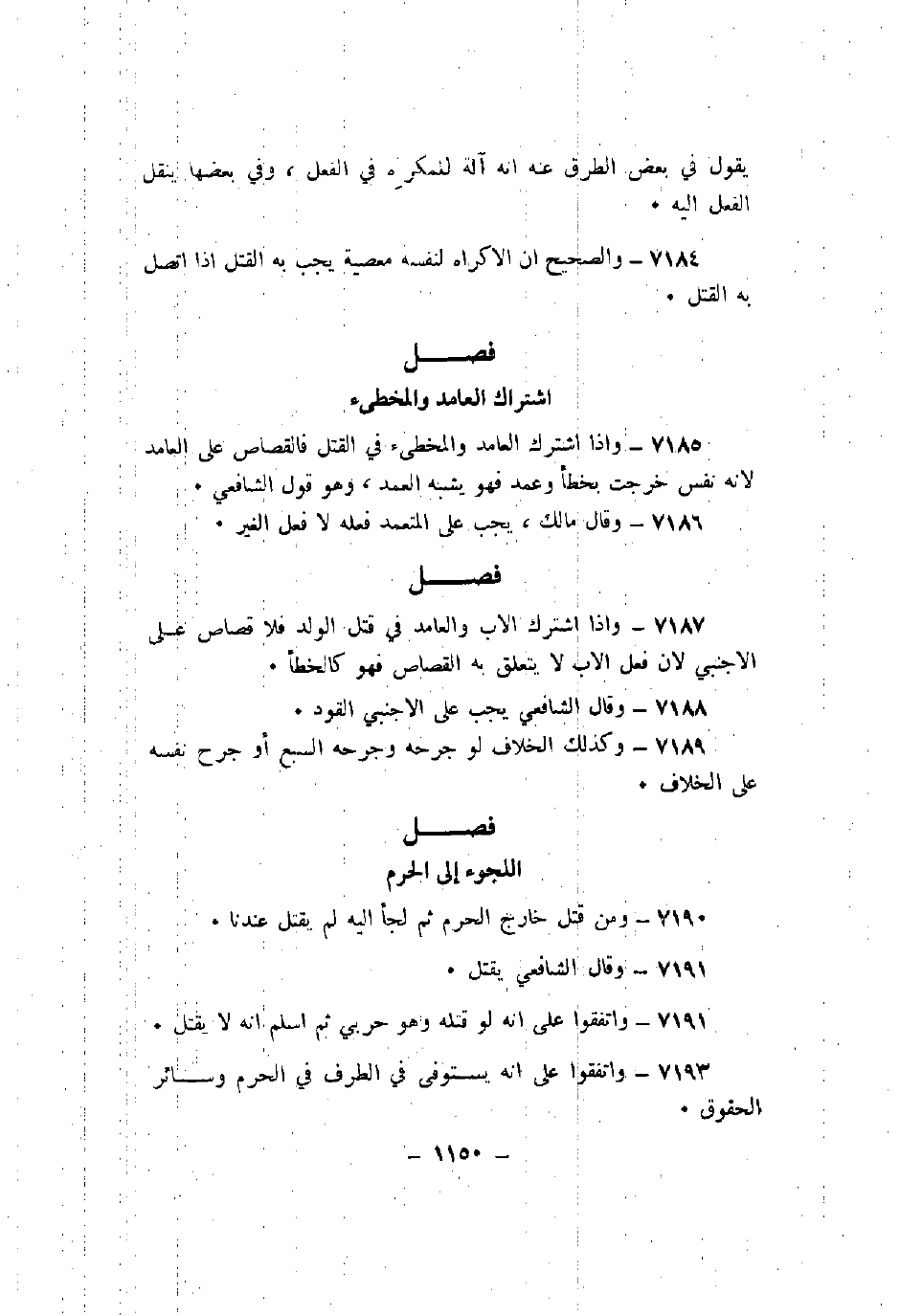7190 - ومن قتل خارج الحرم ثم لجأ إليه لم يقتل عندنا.